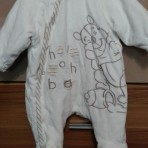Теплый демисезонный, наш любимый комбезик с капюшоном. Очень красивый, Диснеевская серия, шея закрыта, ничего не задувает. Малыш очень мило смотрится в нем. Верх велюровый, наполнитель, похоже на сите...