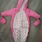 Демисезонный комбинезон, размер 3-6 месяцев, длина общая 48 см, длина рукава 21 см. Перчатки пристёгивается. Состояние хорошее, без изъянов.