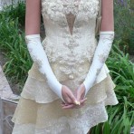 Выпускное платье бежевого цвета.