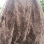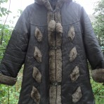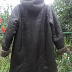 дублёнка из кожзама,внутри тёплый мех,капюшон отстёгивается,на змейке и на крючках.длина по спинке 82 см,по плечам 38 см,длина рукова 57 см(это рукав подвёрнут,но можно и отвернуть ).