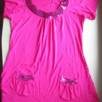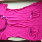 Розовая туника, размер 46-48 (европейский 10-12) или просто М. Отделка - блестящие розовые паетки. Спереди 2 кармашка. На вырезе сборки. Cостав 98%хлопок, 2%- еластан - Цена 70грн.