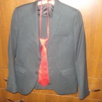 продаю костюм школьный фирма "Новая форма" черный в мелкую полоску длина рукава 57 см,длина по спине 62 см, обхват брюк 70 см.