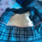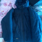 тёплая куртка с повреждениями. сзади потёртости и зацепленная.но в целом даже очень ничего.