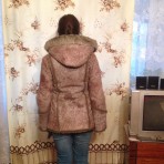 Дубленка из искусственного меха с отстегивающимся капюшоном, на девочку на 13-16 лет, очень теплая.