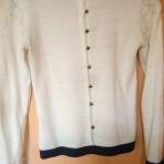 Отличный белый школьный свитер на девочку с кружевами и эффектными пуговицами на спине в хорошем состоянии. Производство Турция.60 % шерсти.