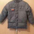Зимняя куртка очень теплая,стильная на парня р.152, на молнии и идёт планка на липучках,есть капюшон с натуральным мехом песца , капюшон и мех съёмный , кулиски, нужна замена собачки на молнии. В целом фурнитура вся целая,в отличном состоянии.