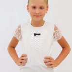 блузка школьная белого цвета с нашивкой сердце. 1539