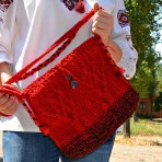 Вязаная сумка - оберег "Цветы огня" (ручное вязание спицами). Отделка - рельефный узор ДРЕВО ЖИЗНИ. Внутри (на подкладке) руническая формула благоденствия… Нитки: шерсть, полушерсть; подкладка - меш...
