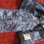 Зимний очень теплый комбинезон, длина штанов от пояса до низа - 50 см, длина рукава - 35 см, длина куртки от плеч до низа - 41 см. Штаны-комбинезон на змейке. Куртка на змейке + липучки-застежки. Есть...