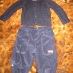 Вязаная кофтюлька на пуговичках,примерно до полтора годика реальный цвет намного темнее(темно синяя), вельветовые штанишки на рост 80 см., тоже намного темнее,чем на фото,мягкие и удобные. Цена - по 3...
