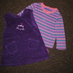 3 Комплект Lee prineess.Рост 80Сарафан микровельвет фиолетового цвета+регланчик тоненький хлопок.все в отличном состоянии.( две отлетевших пуговки прилагаются в карманчике) 60грн .замеры: Сарафан-длина 41см,ширина по плечам 23см,ПОГ 26см.Реглан -длина 33см,длина рукава с плечем 33смПОГ 28см