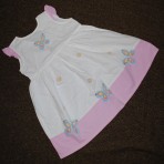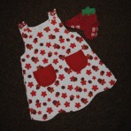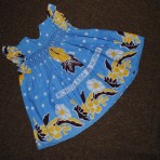 7 Наш любимый сарафан.На Х/Б подкладке.На плечиках цветочки ручной работы.Заметила не большой ньюансик! Под левой подмышкой пару капелек чего то голубоватого.В носке этого не видно(мне)в остальном все отлично.Носки в подарок!.Длина 42см,Ширина по плечам 18см,ПОГ 27см .50грн