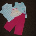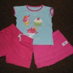 11 Комплект EARLY DAYS Футболка тоненькая+ трикотажные шорты.Одеты пару раз.+юбочка Disney идеально сюда подходит.Замеры: Футболка-плечи 20смПОГ 26смДлина 29см. Шорты-Пояс 21см по ширине.,длина 20см,Юбка- пояс 21см,длина 19см.. 75грн за все.