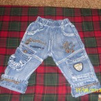 Джинсы в хорошем состоянии, сделанные с подкатом, что позволяет их дольше поносить.