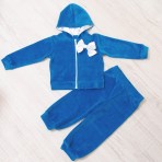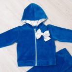 Классные яркие бирюзовые велюрики для малышек. Украшен атласным бантом, контрастной белой молнией и атласом в капюшоне.