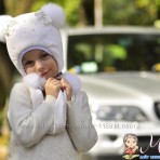 Модель Коала ЦВЕТ ШАПОЧКИ БЕЛО-МОЛОЧНЫЙ С ДВУМЯ ПАМПОНАМИ ИЗ НАТУРАЛНОГО МЕХА БЕЛОГО КРОЛИКА ИЛИ ЕНОТА