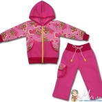 Очень тёплый костюм для девочки из яркого трикотажного полотна. Трёхнитка - тёплая плотная трикотажная ткань с толстым начёсом с изнаночной стороны высокого качества, не теряет форму после стирки. Куртка с карманами застёгивается на молнию. Брюки с накладным карманом, пояс высокий с широкой резинкой.