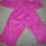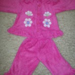 Детский розовый костюмчик с цветочкамидля маленькой принцессы из махры. Кофточка на 4 - х пуговичках. Длина рукава от плеча 25 см. Длина кофточки от плеча 32 см. Длина штанишек 38 см.