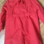 Написала новое, но одевали 1 раз. Очень стильный плащик (фирменный). Дл.от горл. по спине-49, дл.рук-33, шир. в талии-42. Пояс в комплекте. Если ребёнок худенький то можно и до 4-х лет носить.