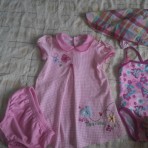 один раз одето состояние новое.платье картерс с трусиками на 18 мес, купальник на 12 мес и бондама на 12 мес