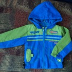 Куртка-ветровка на тонком утеплителе. На 1-1,5 года. Длина -34 см, ширина-30 см, рукав от плеча-31 см.