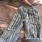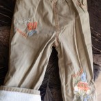 Светло-коричневые штаны с рисунком - по внутреннему шву -31-32 см, общая длина - 54-55 см. Подкладка флис. Штаны затягиваются на поясе. Цена - 75 орн.