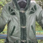тёплая дублёночка из кожзама,на змейке и на крючочках,есть капюшон который отстёгивается.длина по спинке 57 см,по плечам 31 см,длина рукова 35 см(это рукав подкатан,но можно и откатать).примерно на 3 ...