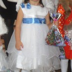 Красивое белое платье с голубым бантом на 2-3 годика. Платье как новое ,одевали 2 раза на Новогодние утренники в сад. Прокат 100 грн