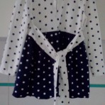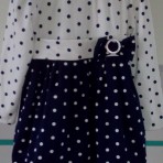 Платье белое с синим в горошек. Без бирок, но не одевали ни разу. Размер 2.5-3.5 года. Длина изделия 50 см, длина рукава от плеча 39 см.