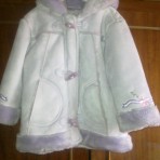 Фото 1-4 Продам искусственную дубленку нежно-сиреневого цвета на девочку 1,5-2,5 года, на бирке стоит 18-23 мес., но реально больше, на фото девочке 3года4мес. Цена - 150 грн.