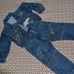 Мы выросли, не успели поносить.замеры: длина штанины от пояса до низа 48, ширина по бедрам - 33см. куртка от воротника до низа по спинке 29, рукав - 29.