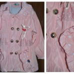 Плащик одели один раз, не угадали с размером, в отличном состоянии. Нежно-розового цвета. На рост 100см. Длина плащика - 53см. Длина рукава регулируется манжетами - 36см+ манжет - 5см.