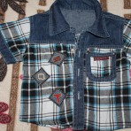 фото 1 - джинсовая рубашка в отличном состоянии, потеряли верхнюю пуговицу, размер на 1-2 года - 50 грн, фото 2 - нарядная рубашка в отличном состоянии, одевали 2 раза на праздники, 92 размер на 2 го...