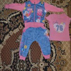 костюм на девочку размер-80-86,удобный модный и с футболкой,