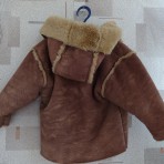 Продам коричневую дубленку на 1,5-2 года, в хорошем состоянии. Длина рукава 25 см, длина - 37 см