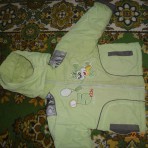 Утепленный. Длина куртки 39 см, длина рукава 34 см. Длина штанов от верха 59 см. В хорошем состоянии.