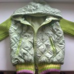 Куртка на весну-осень на возраст 2-3,5 года. Капюшон не отстегивается. Рукава вязанные.