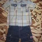 Две очень классные рубашки,натуральные-тоненькие стильные. Состояние новых. длина по спинке 42см. Написанно на 3-4 года,но тут зависит от ребенка мы носили в 2,5 ,но у нас рослый мальчишка. Цена за о...