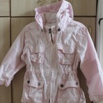 куртка-плащ,на девочку 1-2 года (длинна 40 см,рукав от плеча 30 см) с капюшоном,состояние нового (один раз одели))