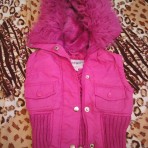Красивый теплый жилет в отличном состоянии без дефектов, носили аккуратно как новый, на рост примерно до 96 см. На капюшоне и в капюшоне мех. Внизу плотная резинка, яркий цвет. На молнии и кнопочках.