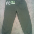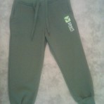 Теплые спортивные штаны с начесом цвета хаки на мальчика 4 года. На резинке присутствует салатовый цвет, вышивка тоже салатового цвета.
