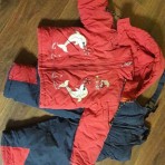 Детский костюм-комбинезон рассчитан на осенне-зимний период. Курточка красного цвета, с рисунком, два кармана по бокам на липучках, капюшон съемный на змейке. Высокий воротник -стойка отлично защитит...