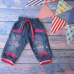 Красивые джинсы с оригинальным рисунком.ризиночка в пояске+шнурочек.на манжетиках .п-во Турции.