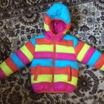 Яркая демисезонная куртка для девочки на 3 года. Утепленная, с капюшоном. Размер на рост 104. В отличном состоянии, без пятен и потертостей.