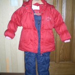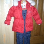 Зимний детский комплект куртка (красного цвета) + полукомбинезон (синего цвета) на девочку фирмы Goldy с утеплителем нового поколения Clear Soft от +5 до -40 градусов, высокая теплоизоляция, гипоаллер...
