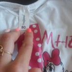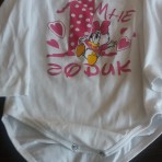 Белый боди с рисунком на 1 годик девочке. Рукав длинный. Состояние нормальное, единственный дефект видно на фото (возле кнопки пустила ткань стрелку)