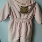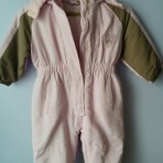 Сдельный комбинезон еврозима нежно розового цвета с горчичным вставками. Состояние хорошее. Из нюансов немного растянуты резинки внизу на штанинах.