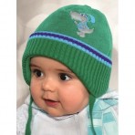 Детская демисезонная шапочка с завязками зеленого цвета, р. 42 - 44, Польша.