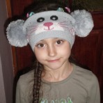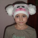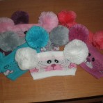 Повязка двойная. Украшена двумя большими бубонами и изображением мордочки. Цвета: белый, розовый, темно-розовый, серый, фиолетовый, бирюзовый, коралловый.