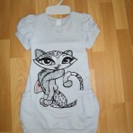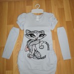 В отличном состоянии. Можно носить как срукавами так и без. Котик весь в стразиках. Все стразики на месте. Написан рост 104,но мы носили при 116-122. Поэтому ориентируетесь на замерчики.: Ширина под ...